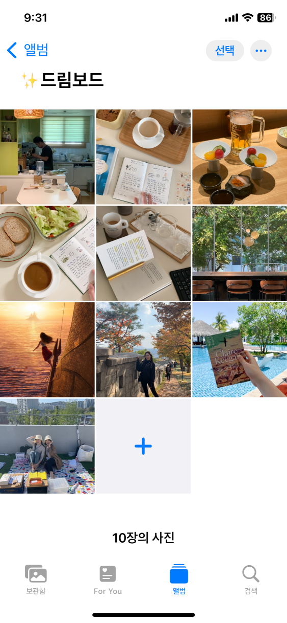: 이건 일년에 1~2번, 마음 근력이 약해졌을 때 만드는 드림보드에요. 가장 강력한 정보인 시각 이미지를 활용해서 내 꿈을 상상하고 구체화합니다. 내가 꿈꾸는 삶의 모습을 가장 잘 나타내는 이미지를 10장 모아서 [✨드림보드]라는 앨범에 넣어요. |