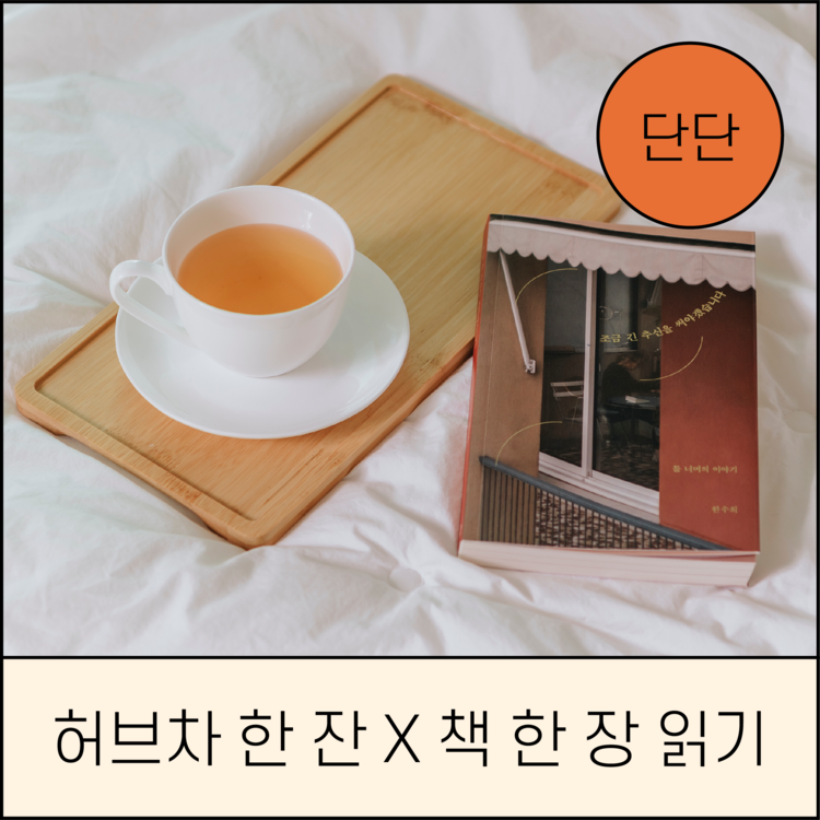 🍵 매일 밤, 차 한 잔과 책 한 장 저랑 한 달간 밤마다 <차 한 잔 마시며 책 한 장 읽고> 카톡으로 응원 주고 받기 어때요? 책 한 권은 너무 부담스럽잖아요. 딱 한 장, 잠들기 전 읽어보기로 해요. 날마다 다른 책을 읽어도 좋아요. 잠들기 전 즐겁고 편안한 기분을 만들어준 가벼운 에세이도 좋고, 졸음을 마구 불러일으키는 과학책도 좋아요. 마지막이 좋으면 전부 좋은 기억으로 남는다고 하잖아요. 우리의 하루도 비슷하다는 생각이 들어요. 회사에서 안 좋은 피드백을 듣고, 준비했던 일이 잘 풀리지 않아 속상한 하루를 보냈더라도 잠들기 전 하루의 마지막 순간이 좋았다면 그 날은 좋은 하루로 기억 되더라고요. 하루의 마무리가 좋으면 그 좋음이 밤새 이어져 새로운 아침을 좋은 기운으로 시작할 수 있어요. 새로운 내일을 더 좋은 에너지로 시작하기 위해 잠들기 전 딱 10분, 나를 위한 정성스런 시간을 만들어 봐요.