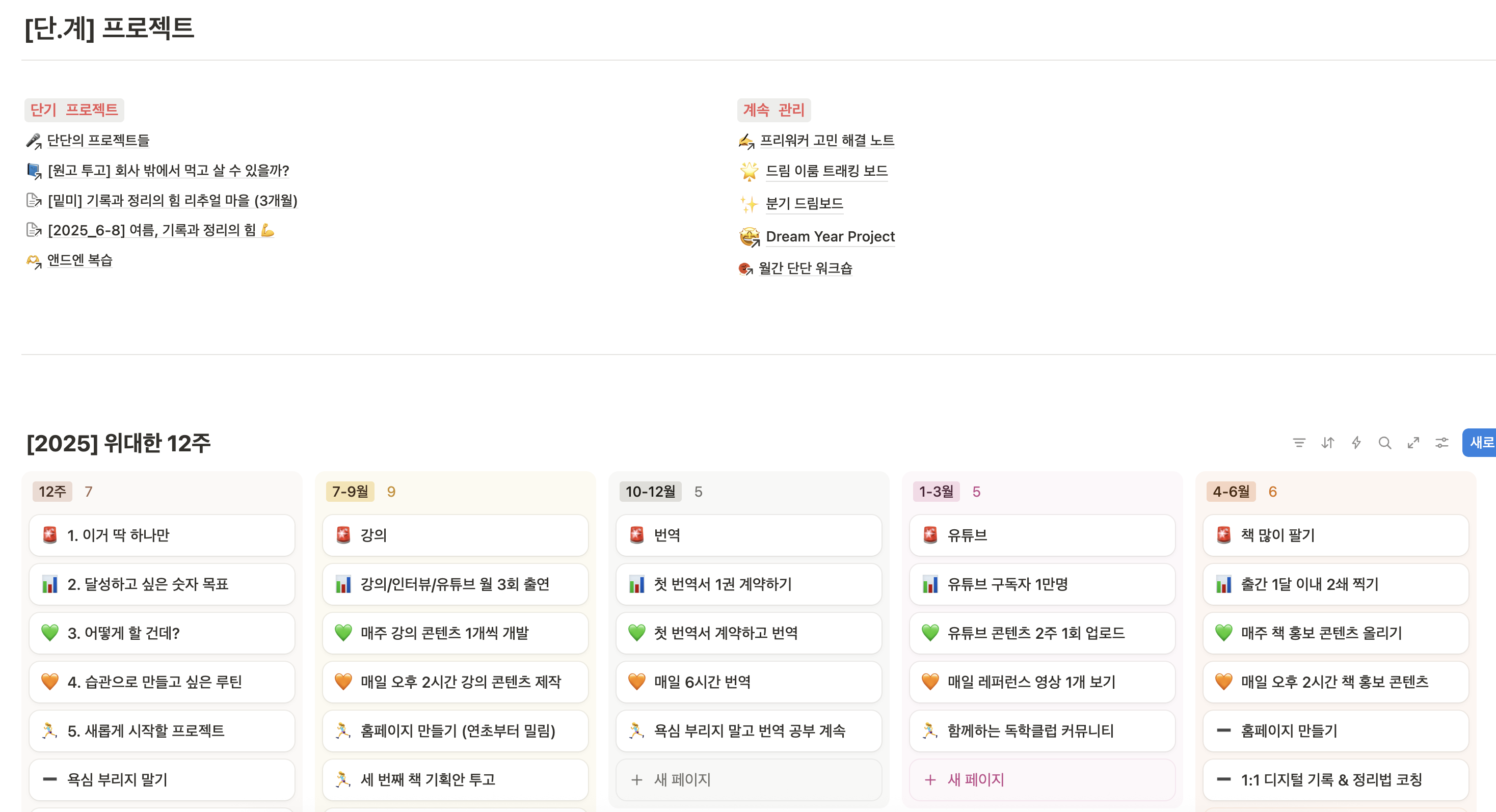 지금 진행 중인 프로젝트와 12주 계획을 실시간으로 관리하는 페이지