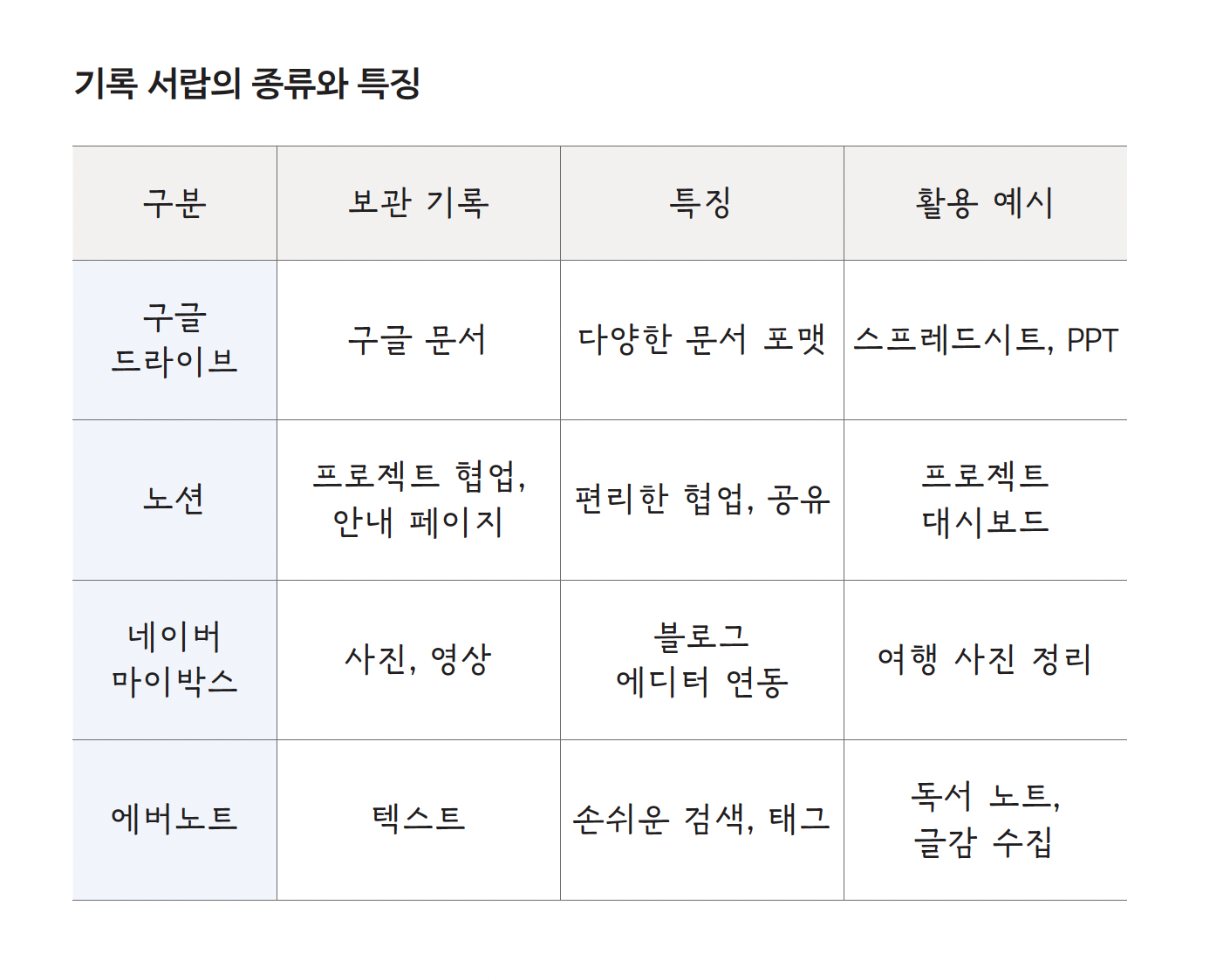책 <내 일을 위한 기록>에도 소개한 기록 서랍 종류와 활용 |