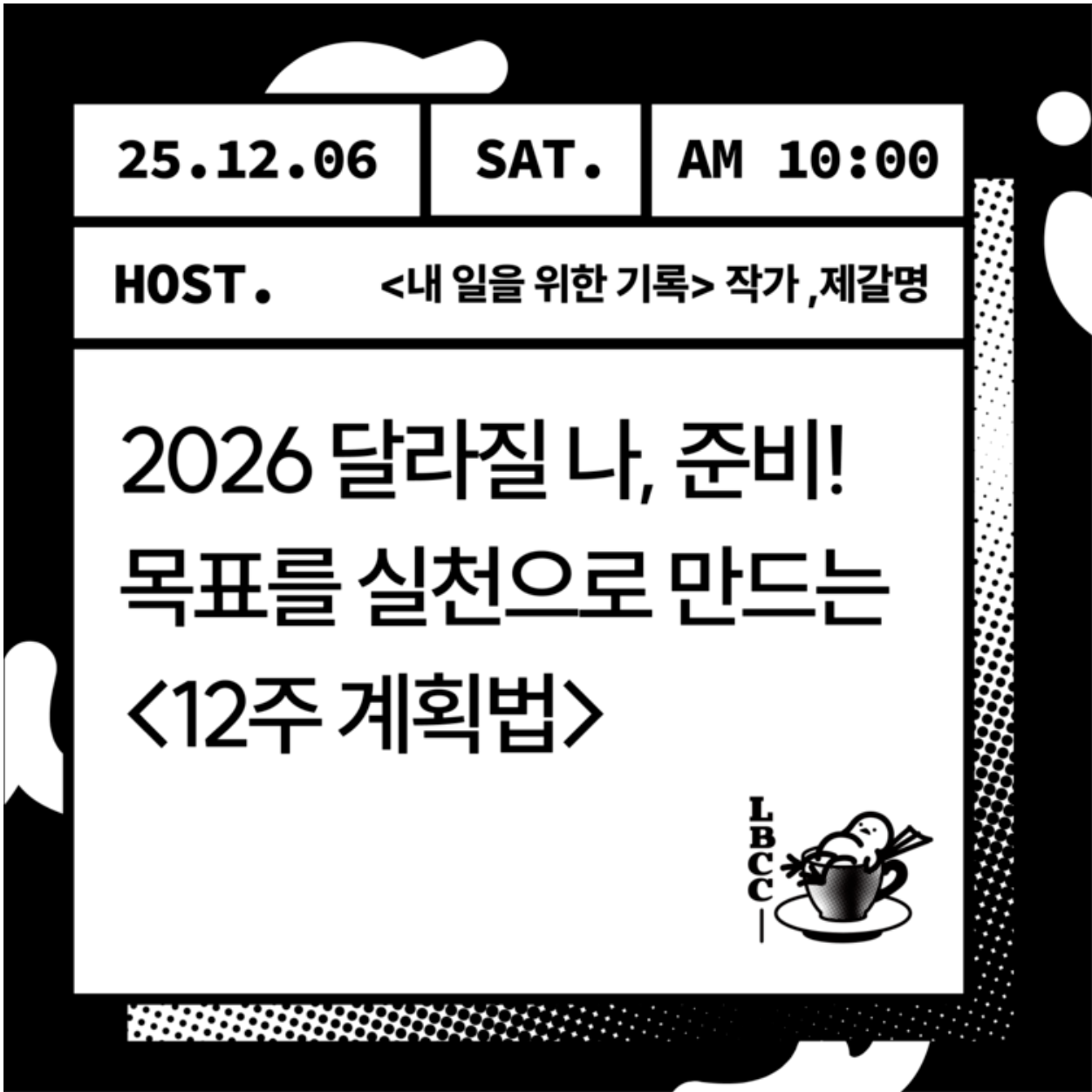 12/6 토 오전 10시 | LBCC 대화모임 - 목표를 실천으로 바꾸는 12주 계획법 신청하기